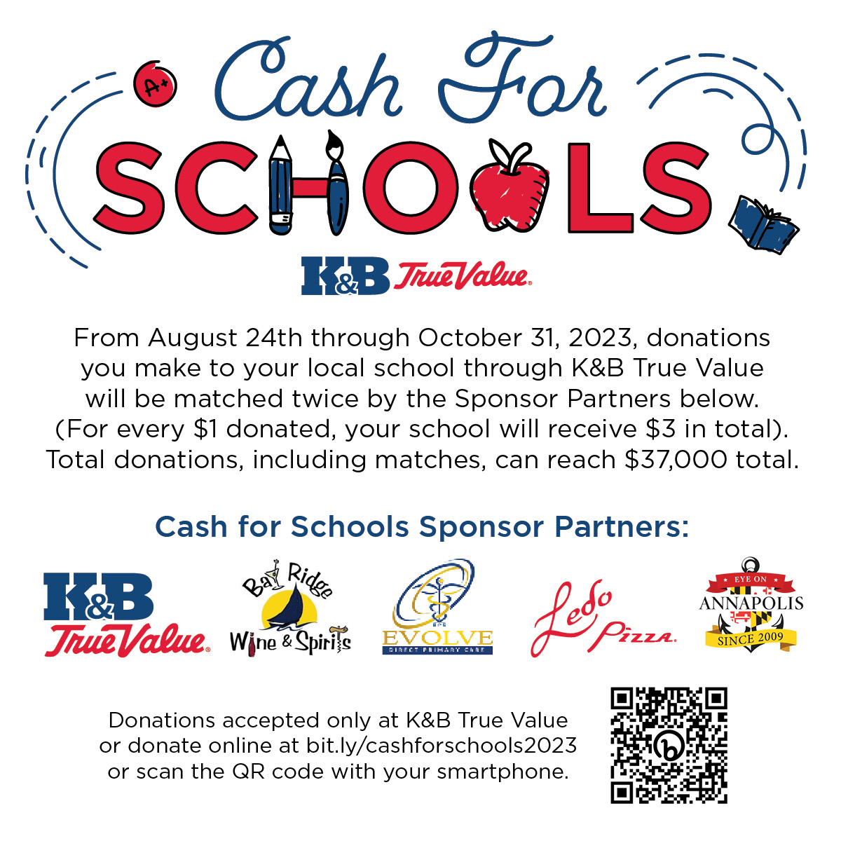 K&B True Value Hardware started Cash For Schools many moons ago in 2009. The concept was simple--a customer makes a small donation on checkout, and the store matches it and gives it to the selected school to help with all the expenses that are NOT covered.