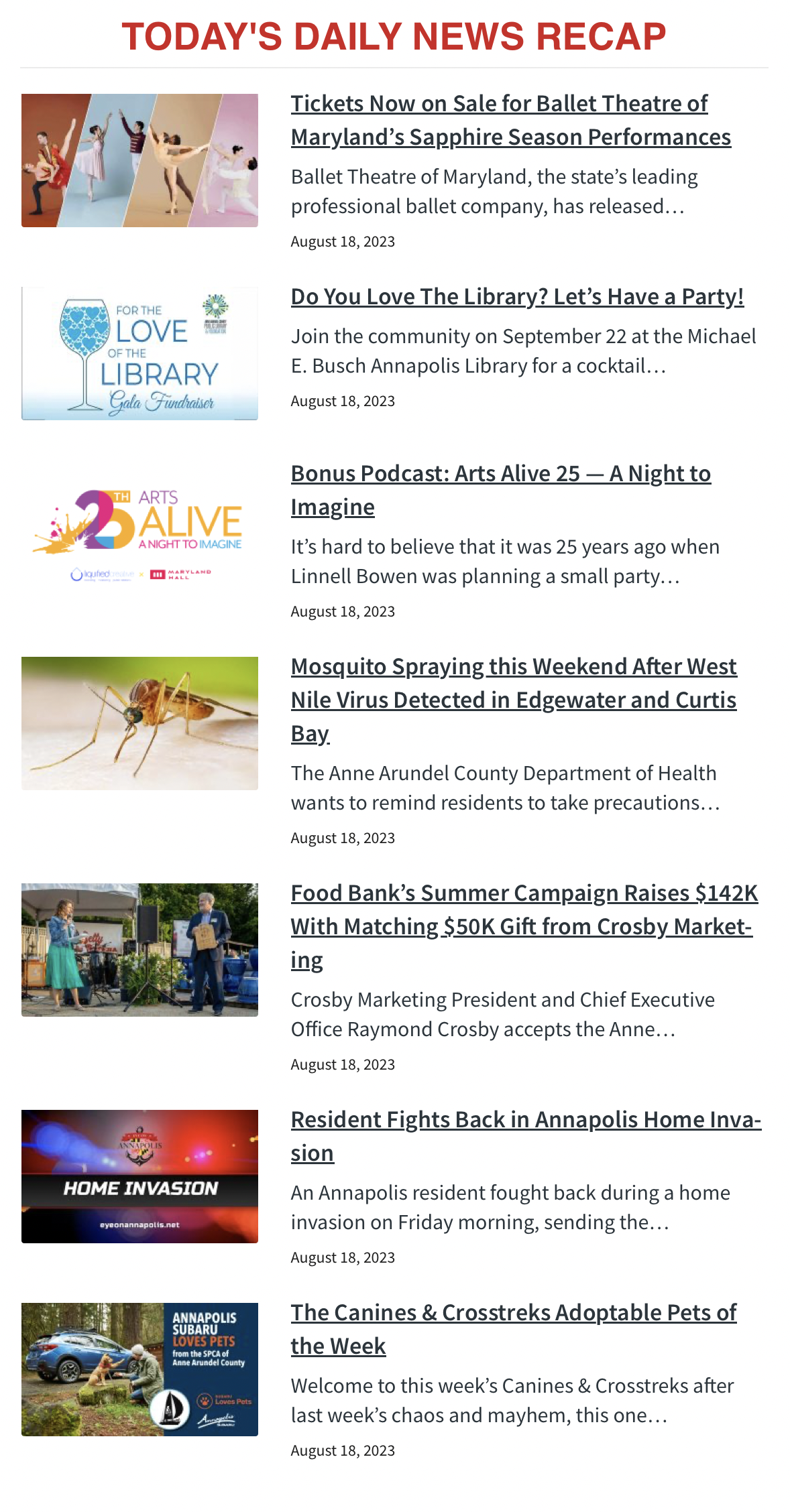 And ICYMI, we have a daily news podcast, also free, and you can subscribe here or where ever you get your podcasts, just search for "Eye On Annapolis Daily News Brief"