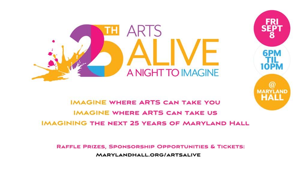 Hi Once again, I am thrilled to be a sponsor for Maryland Hall's Arts Alive 25 celebration on September 8th. Why? That is easy--Maryland Hall is the hub for the arts in the area and art knows no bounds. You can anything to appreciate the arts...Black, white, male, female, young, old, wealthy, poor, or anything in between. And why would I not want to be a supporter? Arts Alive is the annual fundraiser (and party) for the Hall that we call home. Twenty five years ago, it was a small gathering on the front lawn scraping some money to buy some new windows. And look how the Hall has grown--a media hub, concerts, classes, camps, cafes, film festivals, and of course the resident