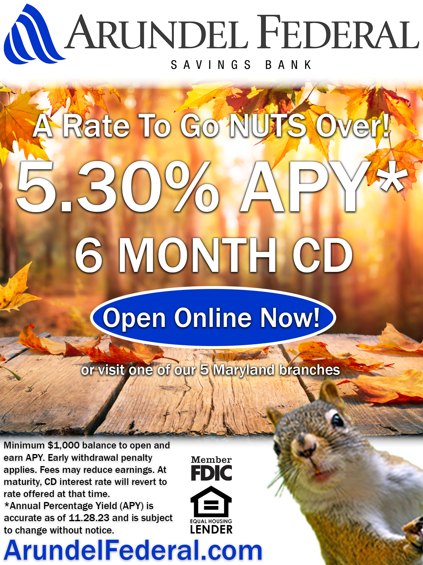 Periodically we stumble on a fantastic offer and like to pass it along to our readers! Arundel Federal Savings Bank is one of the few remaining local banks and right now, with interest rates as they are--this is a deal too good to pass up! Check it out!
