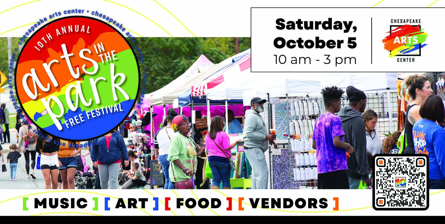 Looking for a fun, free way to spend a Saturday? Join us for Arts in the Park on October 5, 2024 from 10 AM – 3 PM at the Chesapeake Arts Center up in Brooklyn Park!